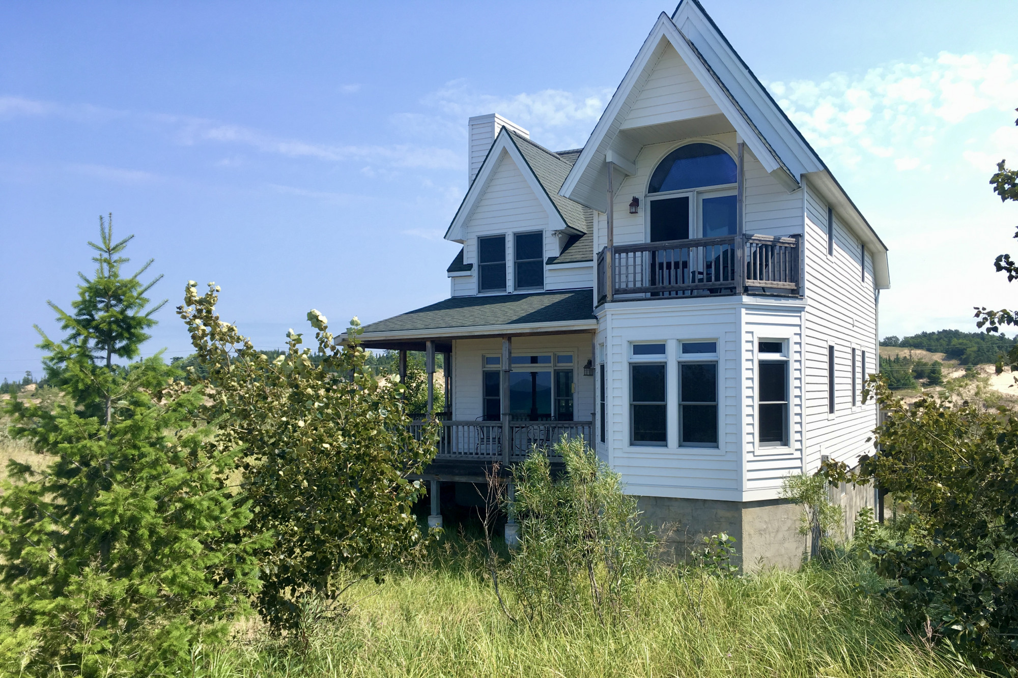 Two story vacation home among the coastal dunes of Sturgeon Bay in Cross Village. The two-story Doherty Beach House features a ground level master bedroom facing the water, hard wood floors throughout, ceramic tile in kitchen, and a wonderful wrap around porch for reveling in the spectacular views of the area's sweeping sand dunes and Lake Michigan to the north.
